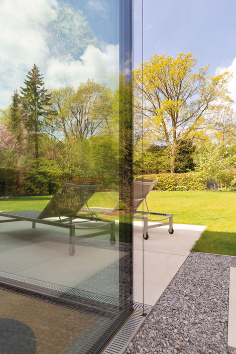 Versetzte Höhen, Rücksprünge und feine Details. Der von den Bauherren ausgewählte langformatige Klinker in verschiedenen Weißtönen von Randers Tegl aus Dänemark hat eine subtile Eleganz und bringt die Kubatur perfekt zur Geltung. Als Kontrast wurde die Garage, das Vordach sowie der direkt in das Haus integrierte Gartenabstellraum mit Aluminiumplatten von Alucobond verkleidet. Deren glatte Oberfläche setzt sich bewusst von der bewegten Struktur des Klinkers ab.